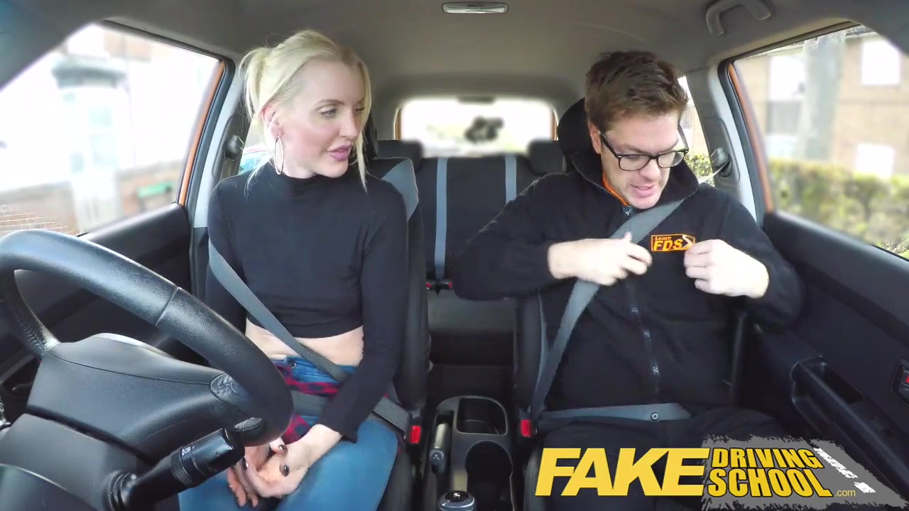 Fake Driving School lesson ends in suprise squirting orgasm and creampie