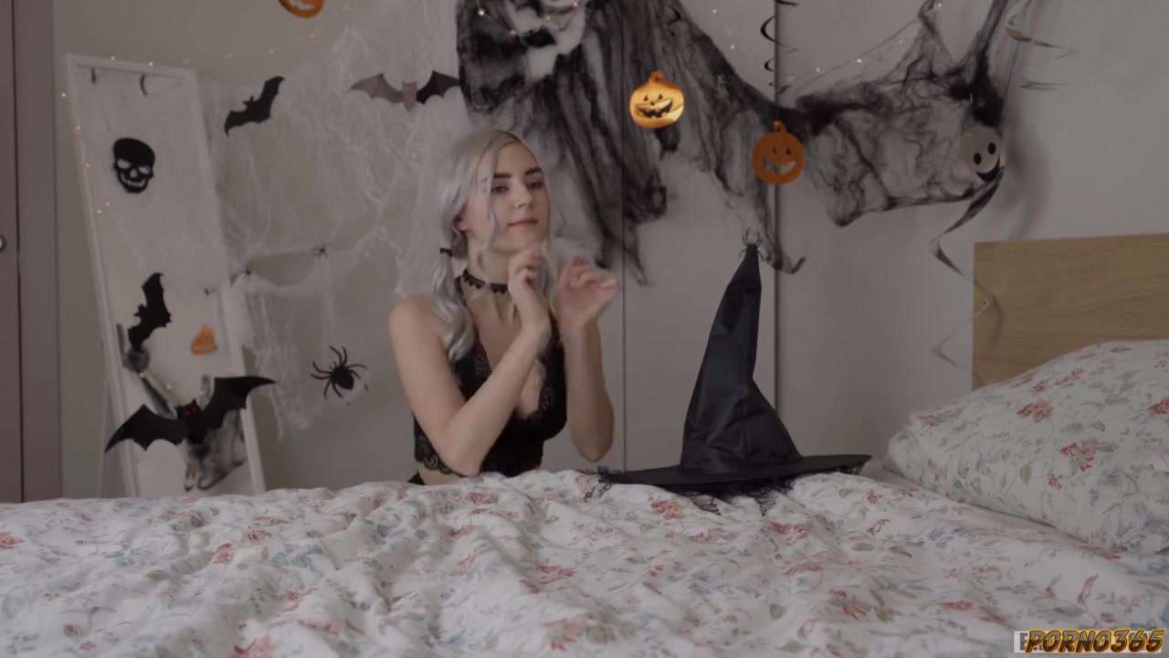 Молоденькая русская ведьмочка на праздник Хэллоуина осталась одно. Но эта симпатичная милаха в черном нижнем белье не долго страдала и совсем скоро наколдовала себе паренька с достаточно большим половым органом, который незамедлительно засунула себе в ротик. Потом куколка стала активно скакать выбритой пизденкой сверху на пенисе и получила немало наслаждения.